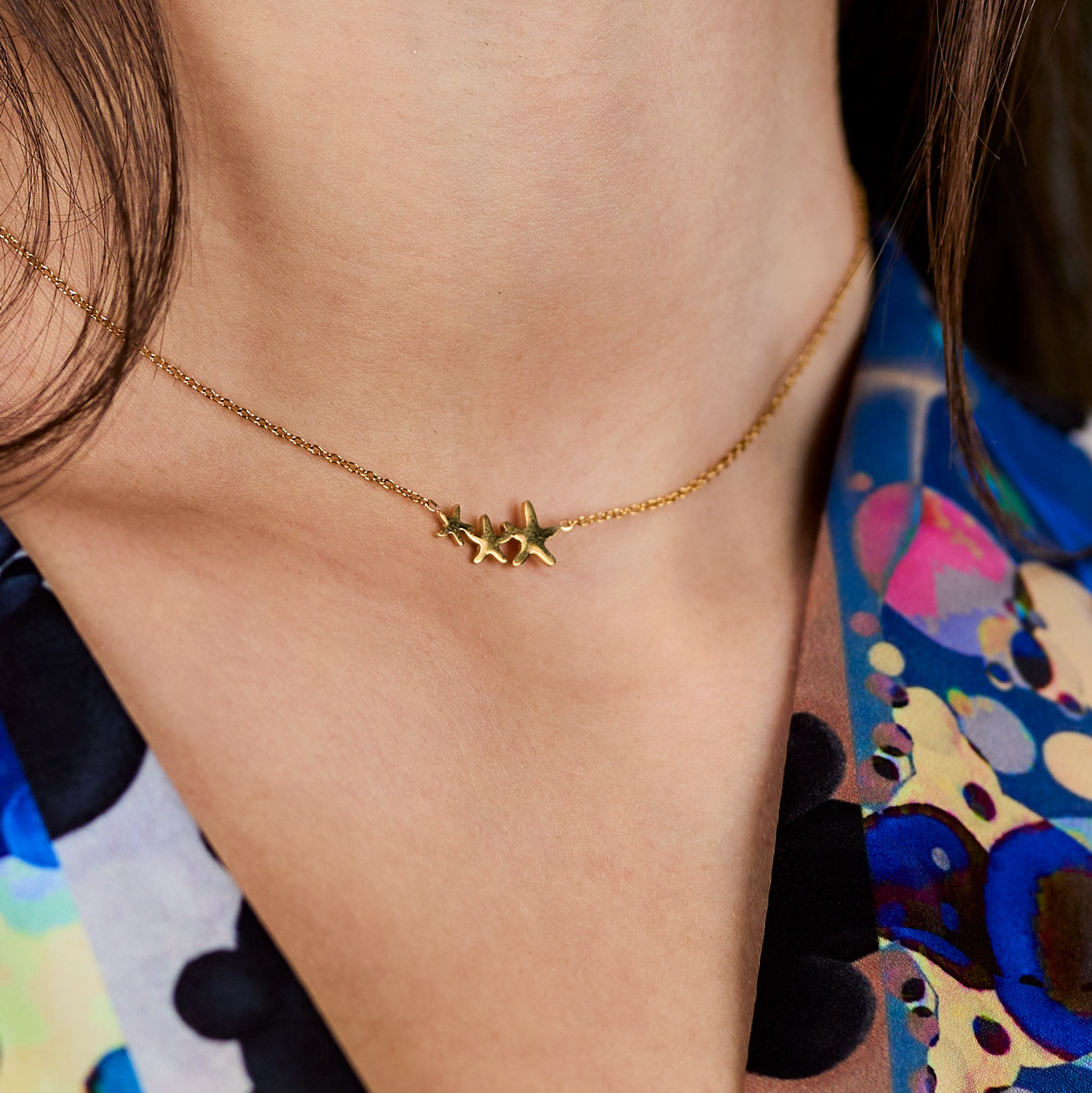 Sumérgete en el brillo estelar con nuestra cadena de acero quirúrgico bañada en oro de 18k con tres dijes en forma de estrella. Estos encantadores colgantes capturan la esencia de la magia y la inspiración celestial, haciendo de esta joya una elección llena de significado y encanto. El acero quirúrgico garantiza durabilidad y brillo duradero. Lleva contigo estas estrellas resplandecientes o regálalas a alguien especial como un recordatorio de su conexión con lo cósmico. Explora nuestra colección y encuentra la cadena con tres dijes de estrella que refleje tu amor por el universo. ¡Compra ahora y luce con confianza esta joya llena de encanto y brillo estelar!