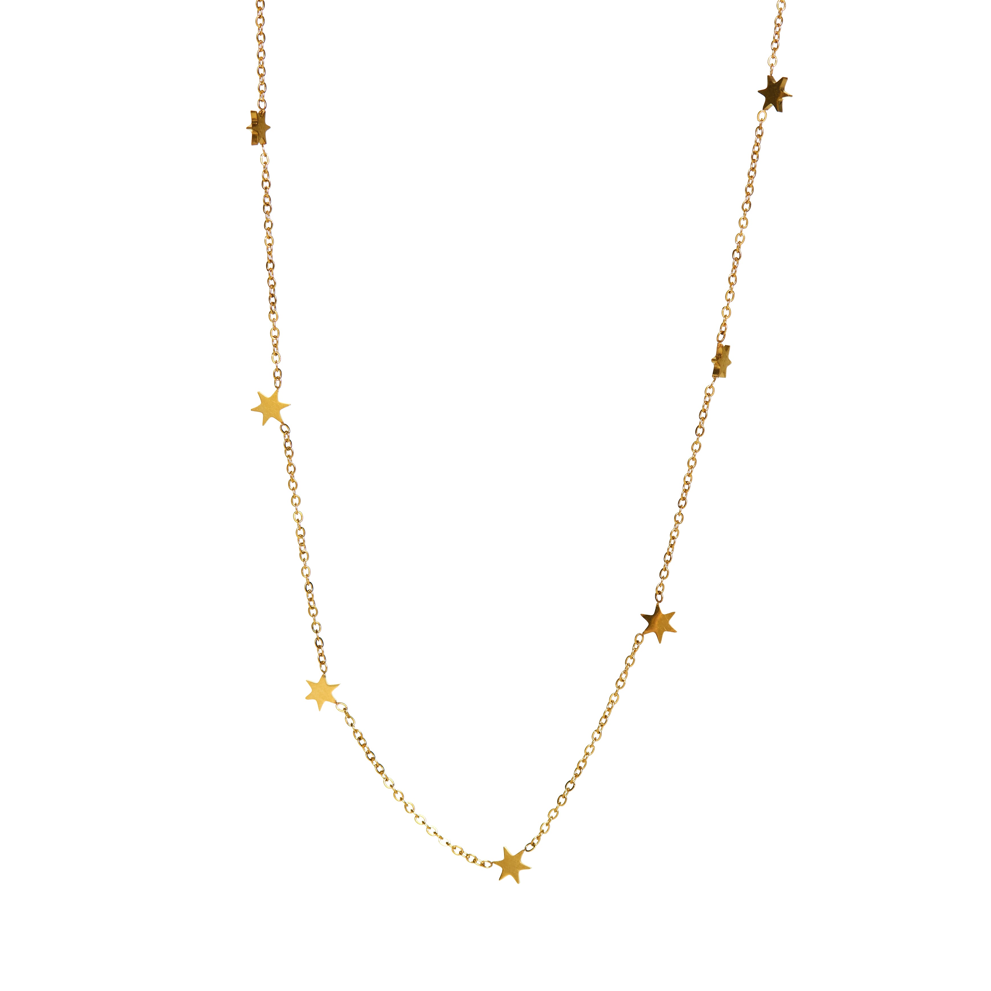 Descubre la belleza y el brillo celestial en nuestra cadena de acero quirúrgico bañada en oro de 18k con varios dijes en forma de estrella. Estos encantadores colgantes capturan la esencia de la magia y el misterio del universo, haciendo de esta joya una elección llena de significado y encanto. El acero quirúrgico garantiza durabilidad y brillo duradero. Lleva contigo estos estelares dijes o regálalos a alguien especial como un recordatorio de su conexión con lo cósmico. Explora nuestra colección y encuentra la cadena con dijes de estrella que refleje tu amor por lo celestial. ¡Compra ahora y luce con confianza esta joya llena de encanto y brillo estelar!