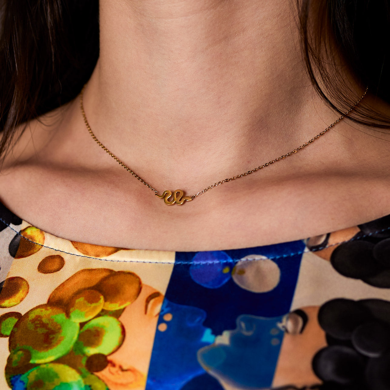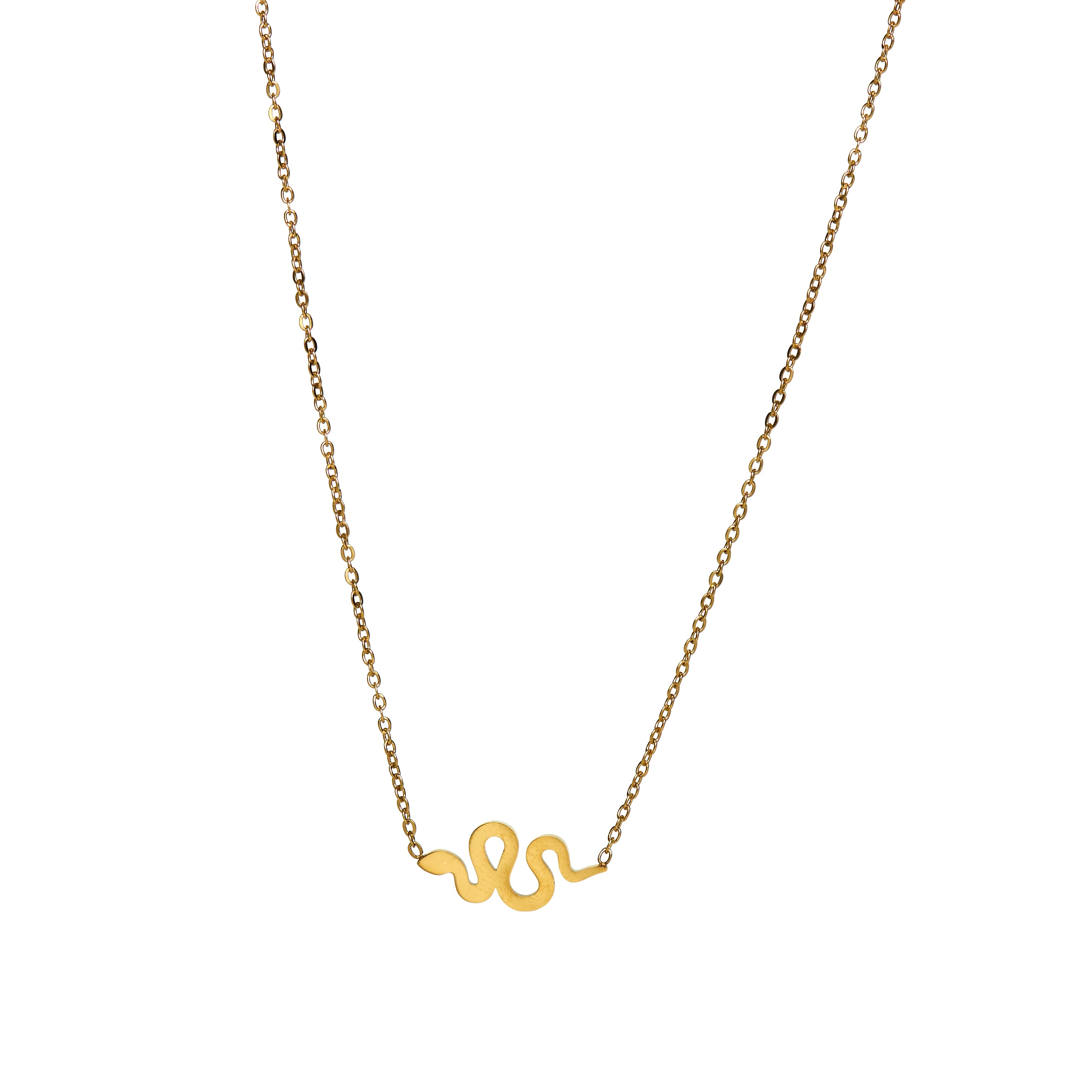 La cadena de acero quirúrgico bañada en oro 18k con un colgante en forma de serpiente es una elección audaz y elegante.La serpiente es un símbolo que tiene múltiples significados en diferentes culturas, que van desde la sabiduría y la curación hasta la renovación y la transformación.