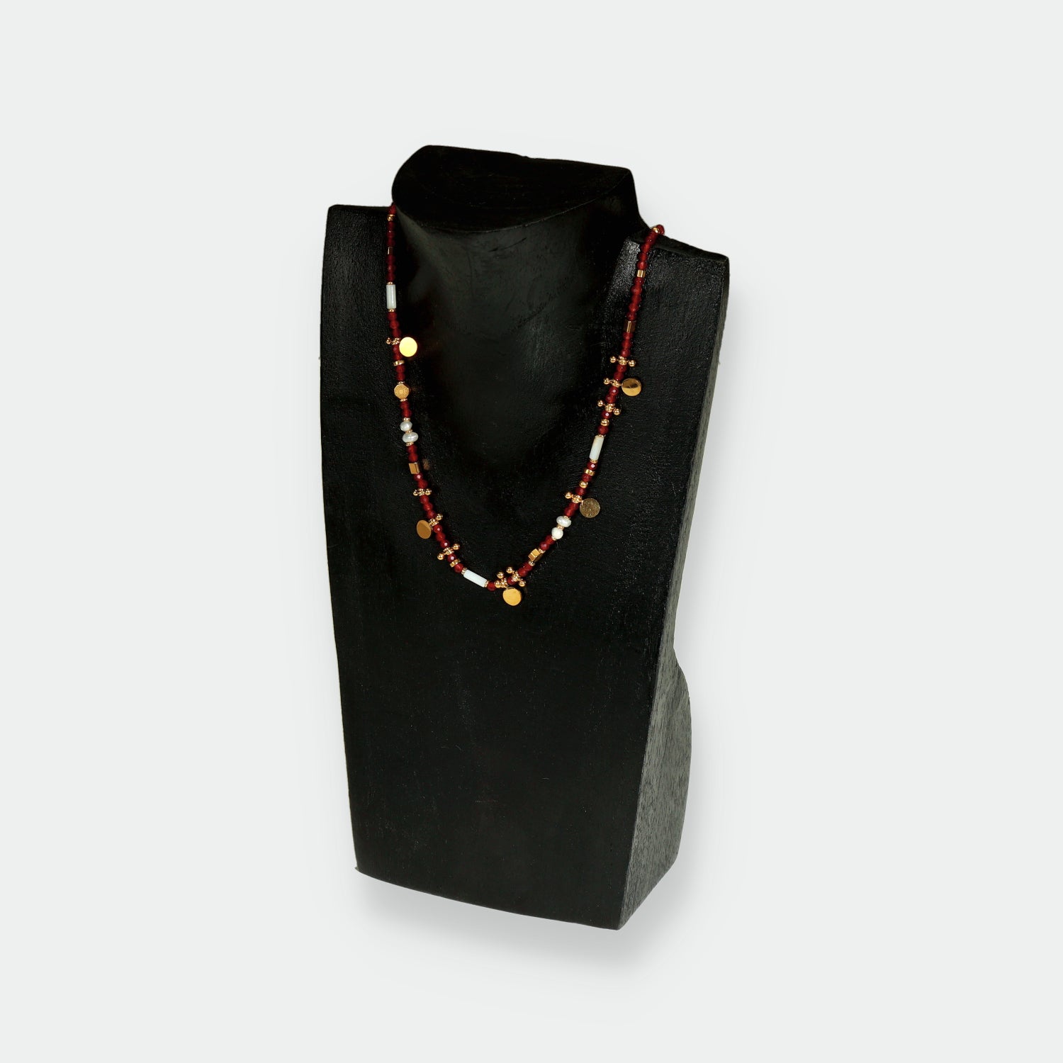 Añade un toque de estilo artesanal a tu cuello con nuestra encantadora gargantilla de cuentas rojas y blancas, elaborada a mano con acero quirúrgico. Cada cuenta ha sido cuidadosamente seleccionada y ensamblada para crear un diseño único y cautivador. El contraste de los colores rojo y blanco añade un toque vibrante a esta hermosa gargantilla. El acero quirúrgico garantiza su durabilidad y brillo duradero. Perfecta para cualquier ocasión, esta gargantilla artesanal te hará lucir elegante y sofisticada. Explora nuestra colección y elige la gargantilla que complemente tu estilo y refleje tu personalidad. ¡Compra ahora y luce con confianza esta joya artesanal de cuentas rojas y blancas con acero quirúrgico!