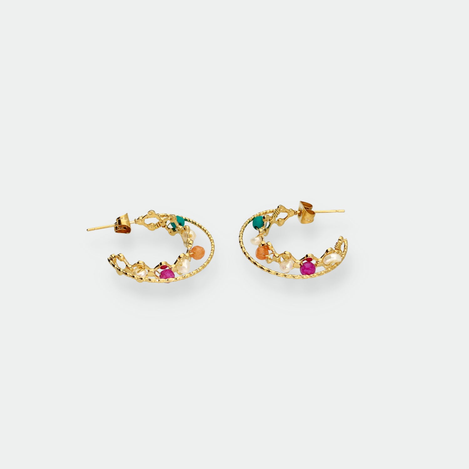 Descubre nuestros exclusivos pendientes de acero quirúrgico con acabado en oro de 18k. Resistentes al agua y libres de oxidación, estos pendientes combinan durabilidad y estilo en una sola pieza. Explora nuestra colección y añade un toque de elegancia duradera a tu look.