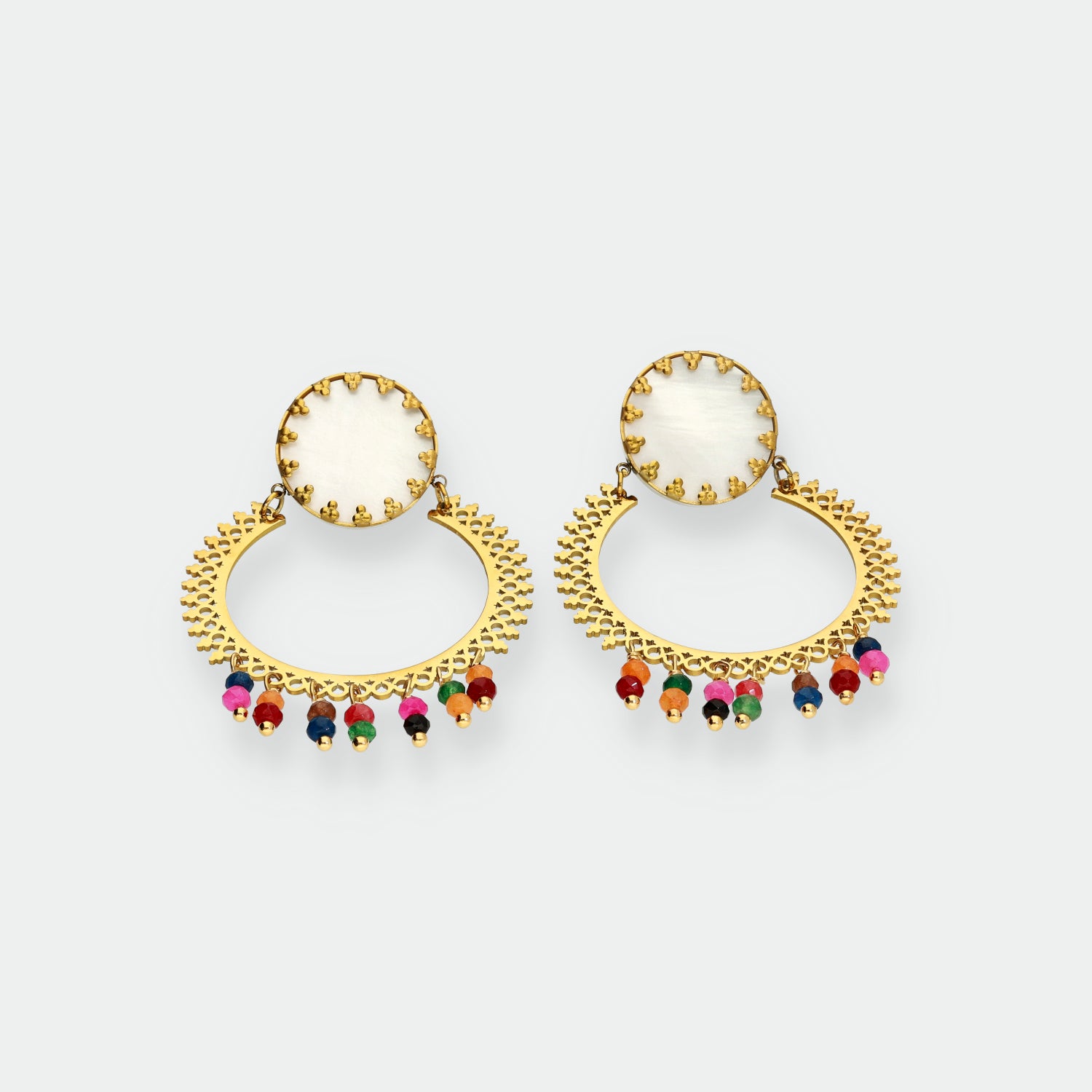 Descubre nuestros exclusivos pendientes de acero quirúrgico con acabado en oro de 18k. Resistentes al agua y libres de oxidación, estos pendientes combinan durabilidad y estilo en una sola pieza. Explora nuestra colección y añade un toque de elegancia duradera a tu look.