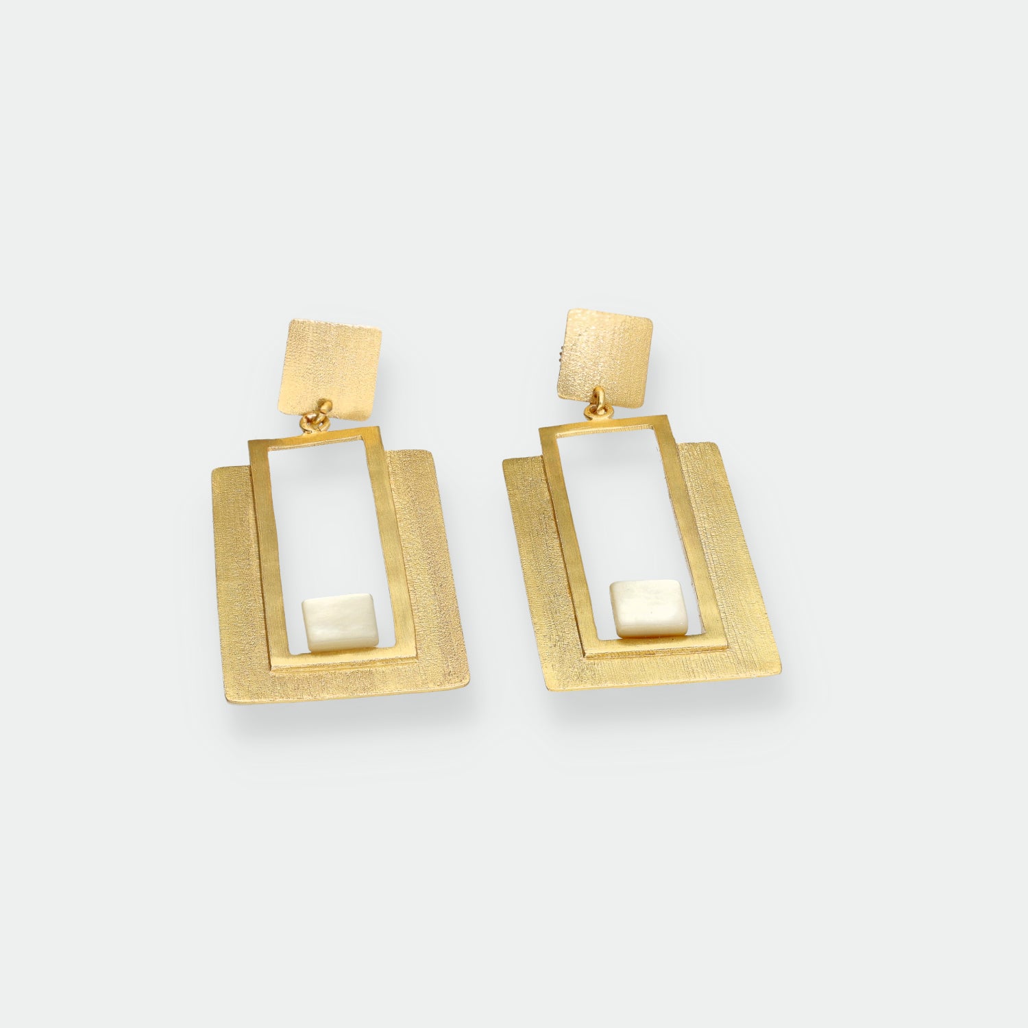 Descubre la elegancia artesanal de nuestros pendientes hechos a mano de nuestra Colección India.Elaborados con latón de alta calidad, estos pendientes son hipoalergénicos y están cuidadosamente recubiertos con plata de ley, además de contar con un lujoso baño de oro 18k.Su piedra de nácar pulida proporciona un brillo natural y sofisticado.Explora nuestra exclusiva selección y luce un estilo único y deslumbrante.¡Compra ahora y añade un toque de encanto y belleza a tus conjuntos!